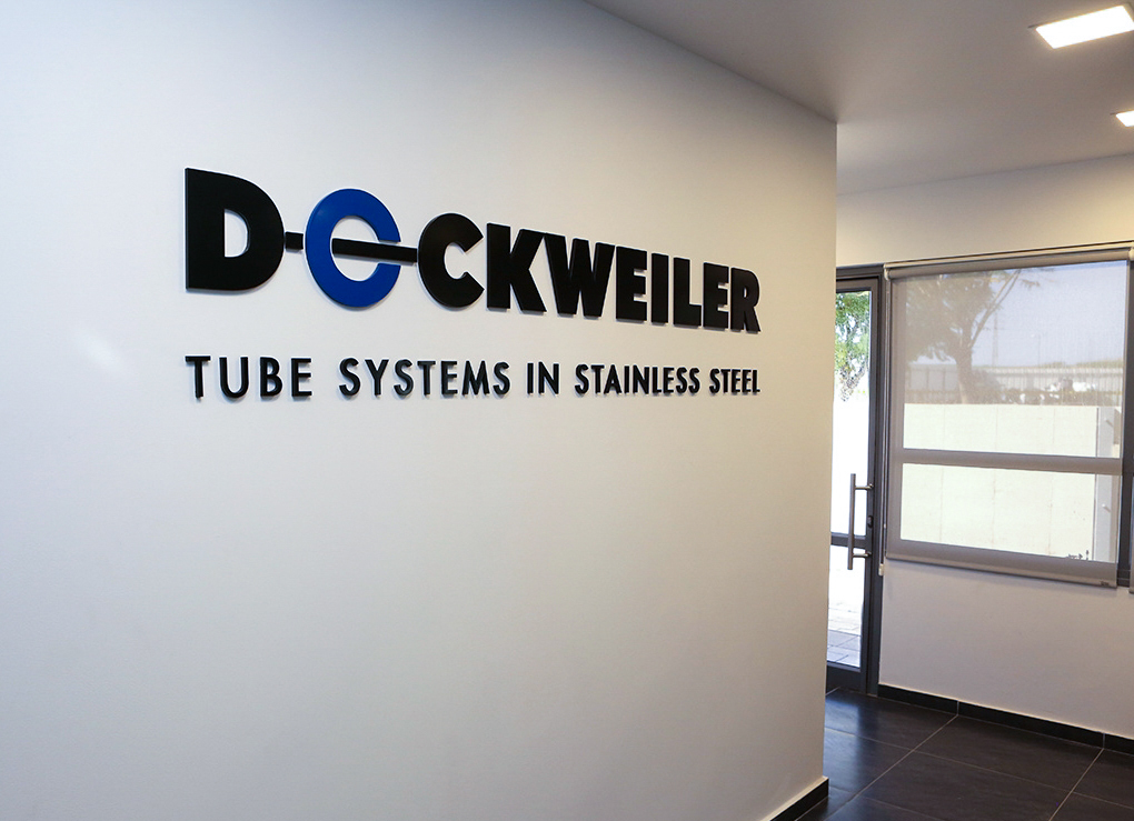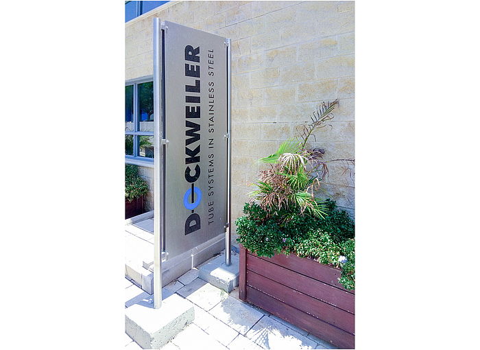 Als Marco Offermann, zuständig für das Marketing der Dockweiler AG, uns fragte, ob wir innerhalb von 4 Wochen eine Stele und einen Schriftzug für die neue Niederlassung Middle East anfertigen können, haben wir gleich ja gesagt.