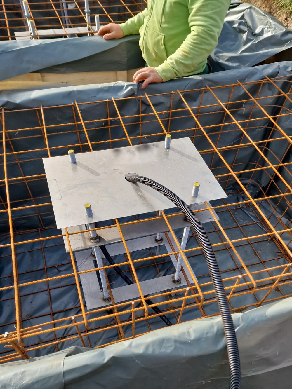 Nach erfolgreicher Neuplanung passten wir die Baugrube entsprechend an. Anschließend setzten wir die Verschalung und die beiden Fundamente, einschließlich der Ankerkörbe und Bewehrung. Zusätzlich erfolgte der Anschluss an den bauseitigen Stromanschluss, der reibungslos integriert werden musste, um die Funktionsfähigkeit der neuen Werbeanlage zu garantieren.