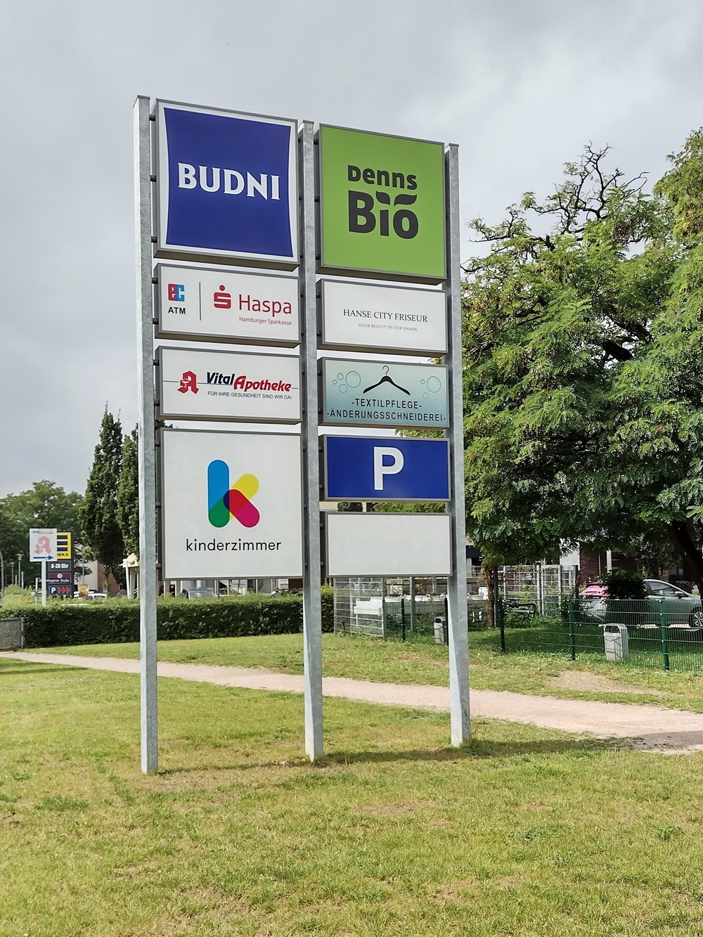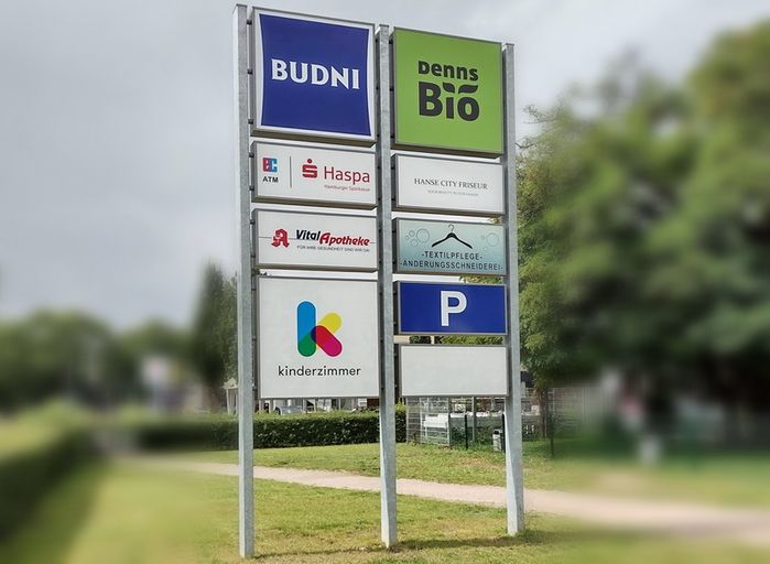 Die zweiseitige Werbeanlage wurde mit auffälligen, klar lesbaren Acrylglasscheiben versehen, die mit hochwertigen Folien beschriftet sind, um die im Gebäude ansässigen Firmen optimal zu präsentieren. Strategisch an einer stark frequentierten Stelle vor dem Gebäude des Kunden platziert, zieht sie effektiv die Aufmerksamkeit der Passanten auf sich. Interessieren Sie sich ebenfalls für eine beleuchtete Standschildanlage, um werbewirksam auf sich aufmerksam zu machen? Dann stöbern Sie doch einmal in unserer Unterrubrik "Pylone und Stelen" und klicken Sie hier!