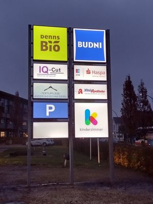 Die zweiseitige Werbeanlage wurde mit auffälligen, klar lesbaren Acrylglasscheiben versehen, die mit hochwertigen Folien beschriftet sind, um die im Gebäude ansässigen Firmen optimal zu präsentieren. Strategisch an einer stark frequentierten Stelle vor dem Gebäude des Kunden platziert, zieht sie effektiv die Aufmerksamkeit der Passanten auf sich. Interessieren Sie sich ebenfalls für eine beleuchtete Standschildanlage, um werbewirksam auf sich aufmerksam zu machen? Dann stöbern Sie doch einmal in unserer Unterrubrik "Pylone und Stelen" und klicken Sie hier!