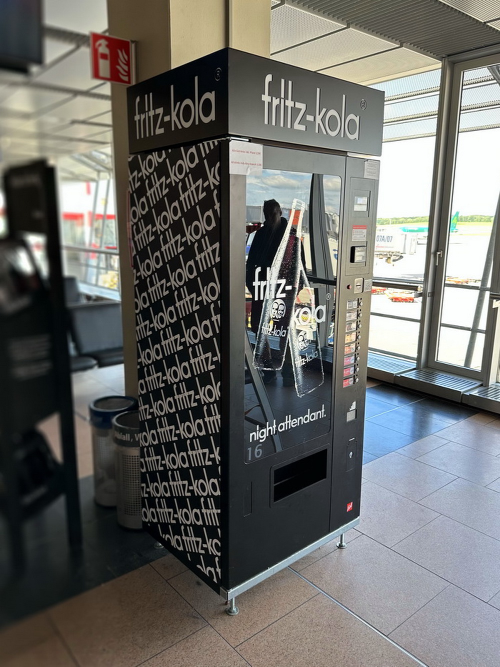 Illuminierte fritz-kola-Getränkeautomaten – Leuchtkasten mit LED im Hamburger Flughafen