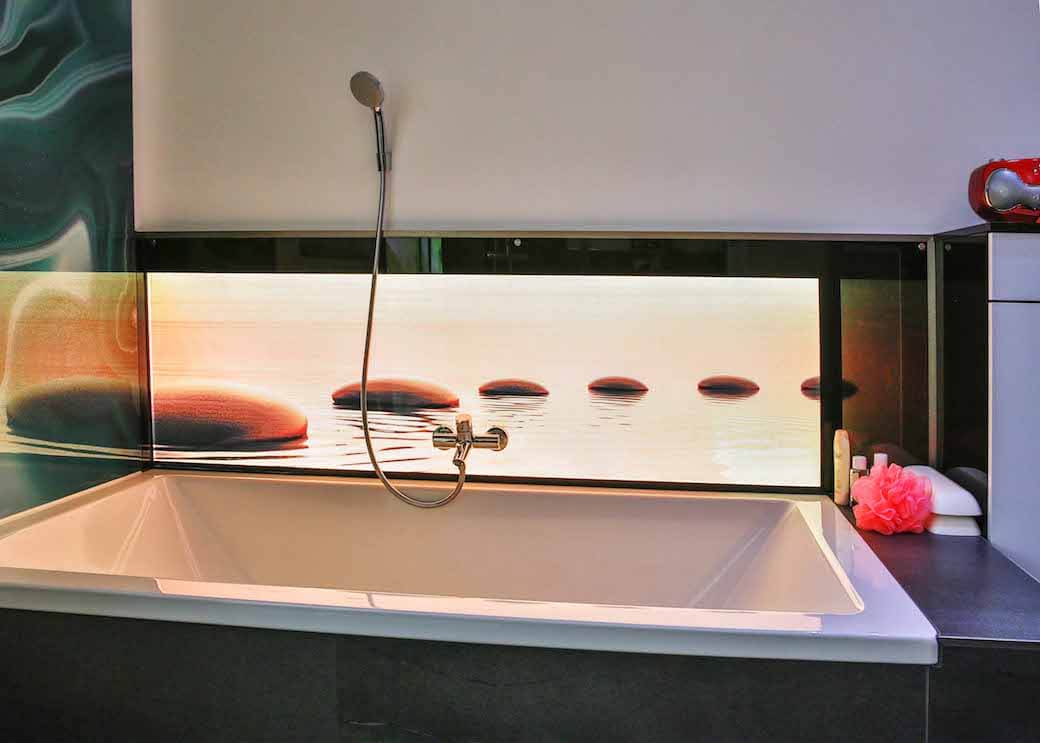 Die raffinierte Zusammensetzung von SmartGlas erlaubt es, auch in Feuchträumen wie zum Beispiel dem Badezimmer neue Akzente zu setzen und für Wohnlichkeit zu sorgen. Ihr gewünschtes Motiv wird rückseitig auf die schützende Glasfläche aufgedruckt und erzeugt so eine beeindruckende Tiefe und Billianz. Den nötigen Charakter verleihen Sie dem Flächenlicht mit der Dimmfunktion. So können Sie je nach Bedarf Ihre gewünschte Helligkeit direkt regeln. Auch die Lichtfarbe lässt sich individuell mit der Fernbedienung einstellen. Über eine Brandbreite von fünf Weißtönen können Sie sogar wählen ob Sie Ihr SmartGlas in einem Warm- oder Kaltweiß leuchten lassen möchten.